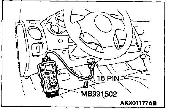 CAUTION: To prevent damage to scan tool MB991502, always turn the ignition switch to the "LOCK" (OFF) position before connecting or disconnecting the scan tool MB991502.