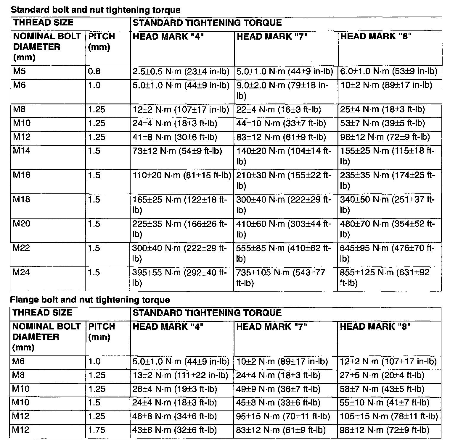 Each torque value in the table is a standard value for tightening under the following conditions: