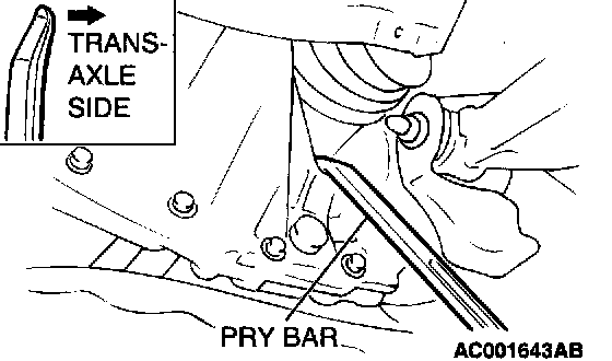 1. Insert the pry bar between the transaxle case and the driveshaft as shown to remove the driveshaft.<2.4L ENGINE, 3.0L ENGINE-LH>