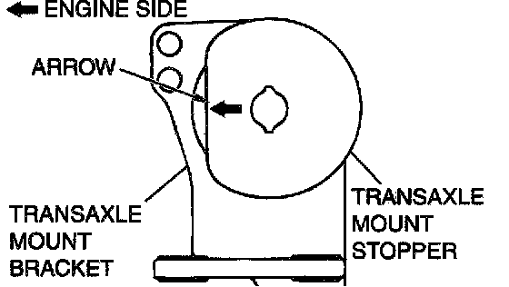 Install the transaxle mount stopper so that the arrow mark points as shown in the illustration.