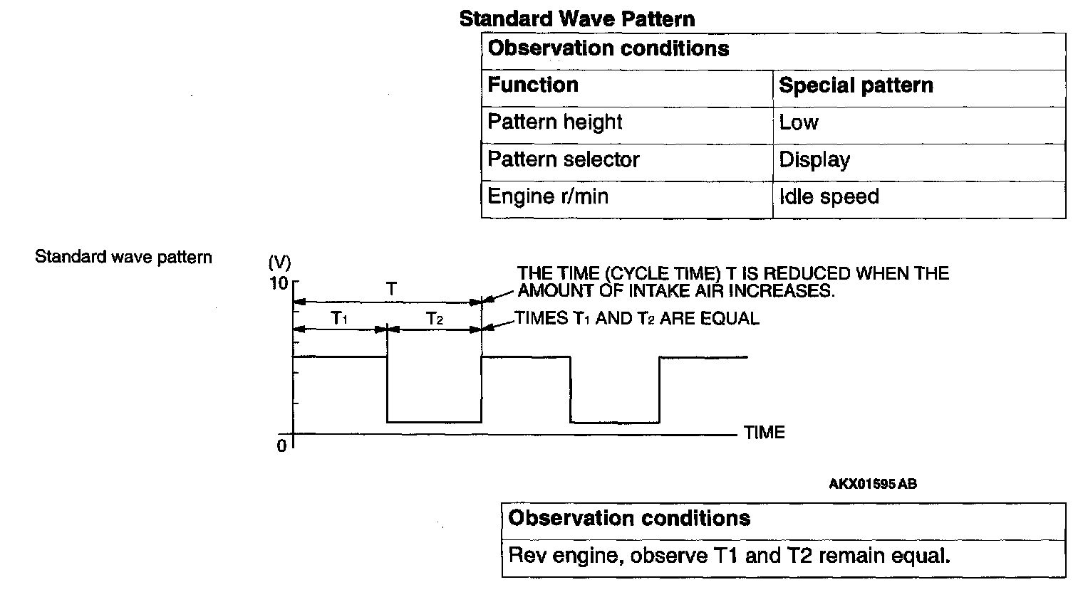 1. Check that cycle time T becomes shorter and the frequency increases when the engine speed is increased.
