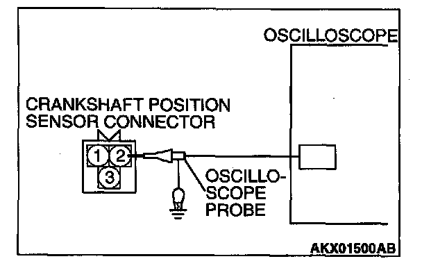 4. Connect the oscilloscope probe to crankshaft position sensor connector terminal 2 (black clip of special tool).
