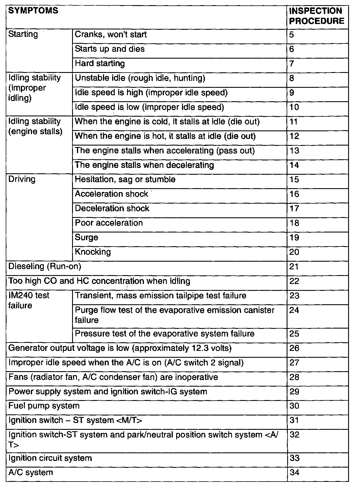 Symptom Chart (Part 1 Of 2):