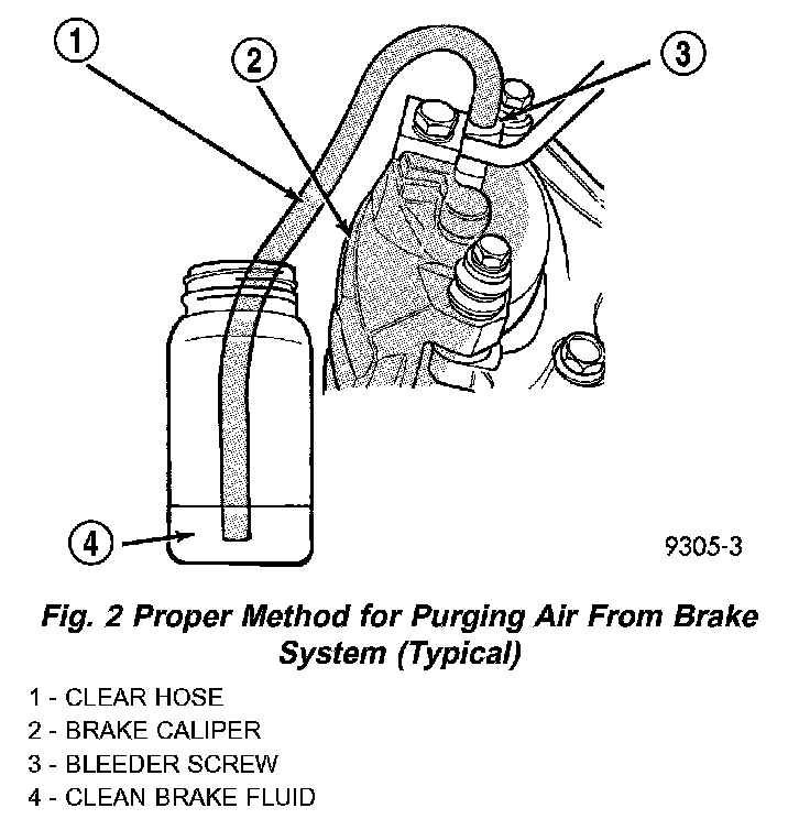 3. After approximately 4-8 ounces of fluid have been bled through the brake circuit and an air-free flow is maintained in the clear plastic hose and jar, close the bleeder screw.
