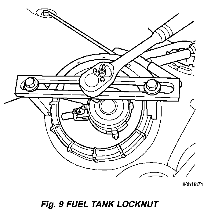 6. Use Special Tool #6856 to remove fuel pump module locknut (Fig. 9).