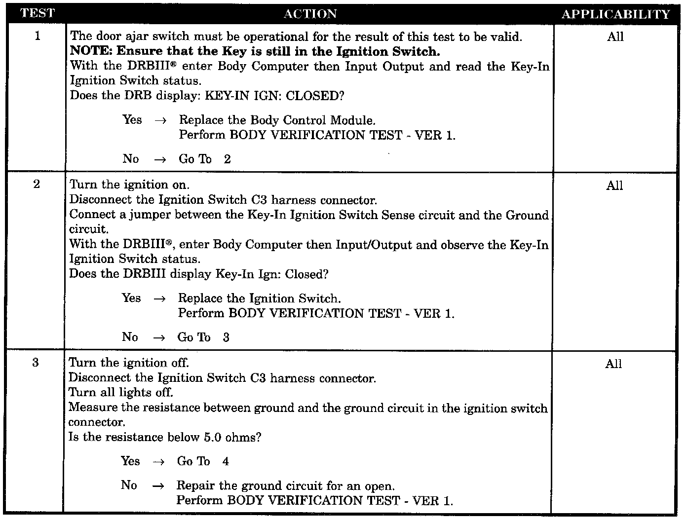 CHIME INOPERATIVE WITH KEY-IN IGNITION AND DRIVER DOOR OPEN