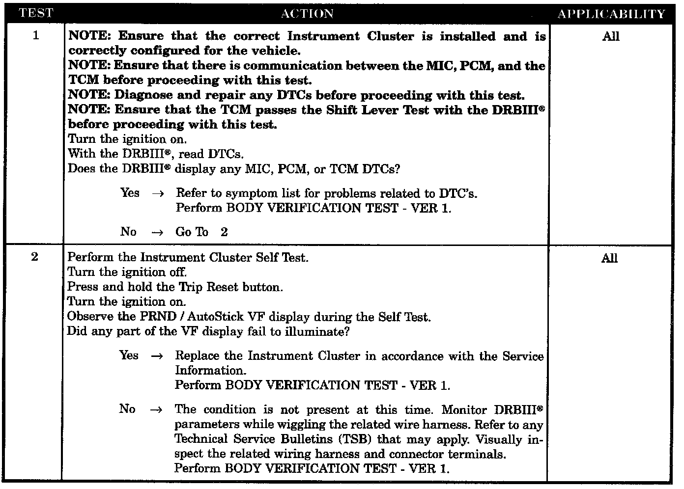 PRND OR AUTOSTICK INDICATOR INACCURATE OR INOPERATE