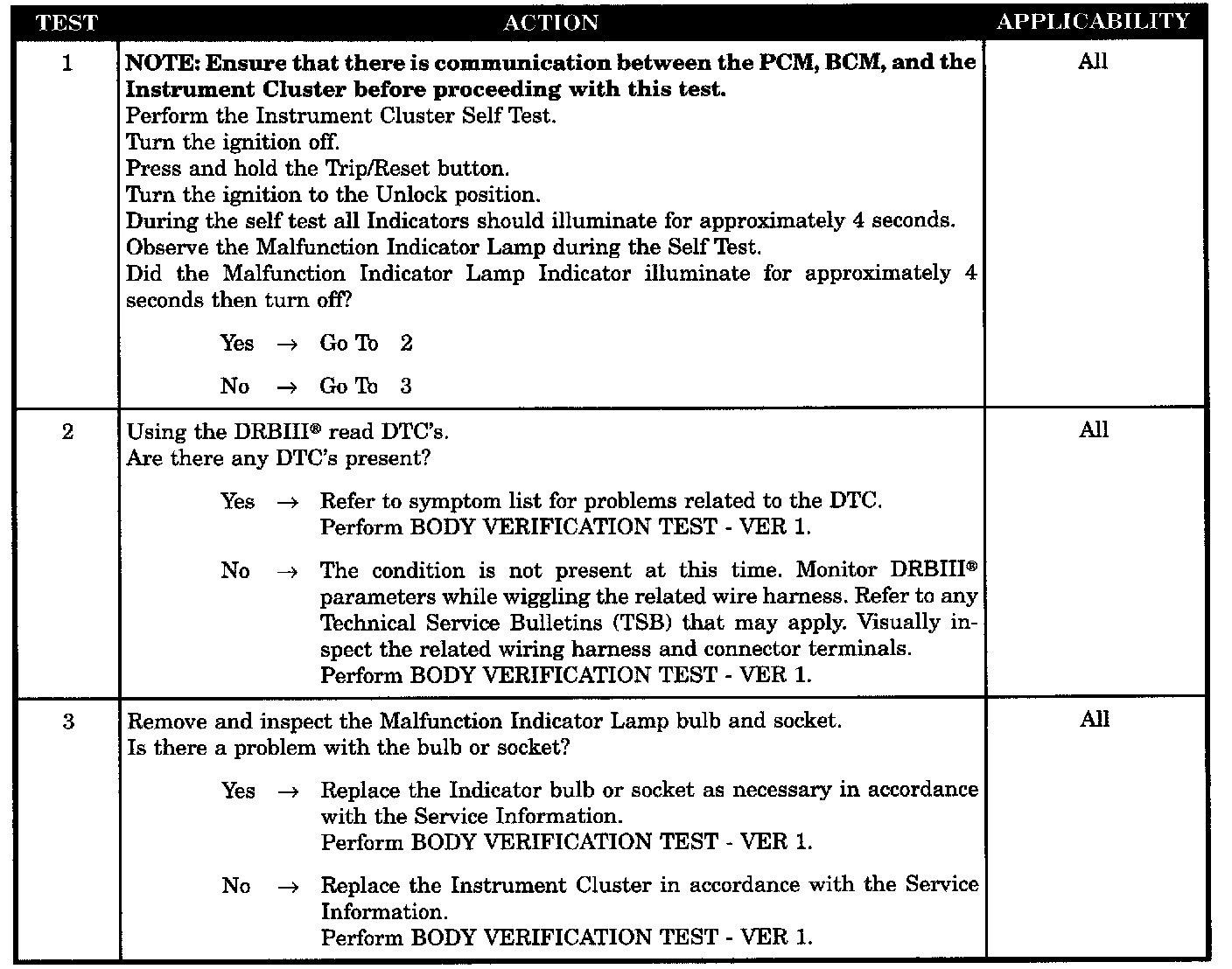 MALFUNCTION INDICATOR LAMP NOT OPERATING PROPERLY