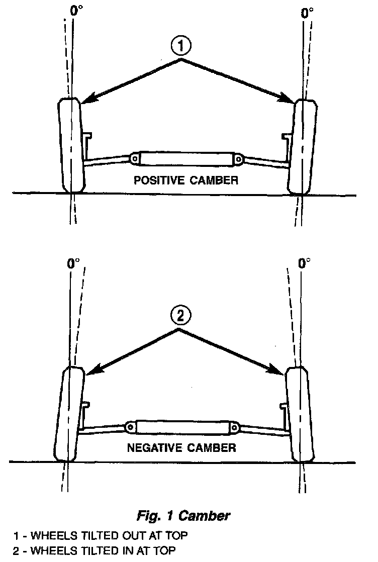 Camber is the inward or outward tilt of the top of the tire and wheel assembly. Camber is measured in degrees of angle relative to a true vertical line. Camber is a tire wearing angle.