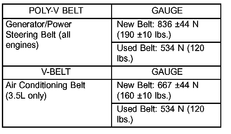 Use belt tension gauge, Special Tool 7198 for conventional V-belts and Poly-V belts.