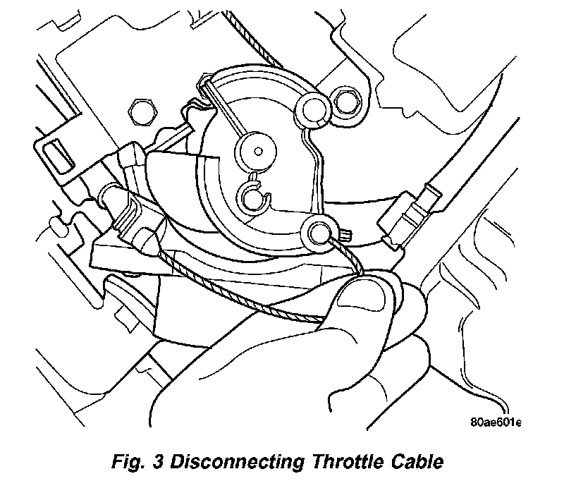 4. Lift the retaining tab on the throttle cable and slide cable out of bracket Lift the retaining tab on the speed control cable and slide cable out of bracket