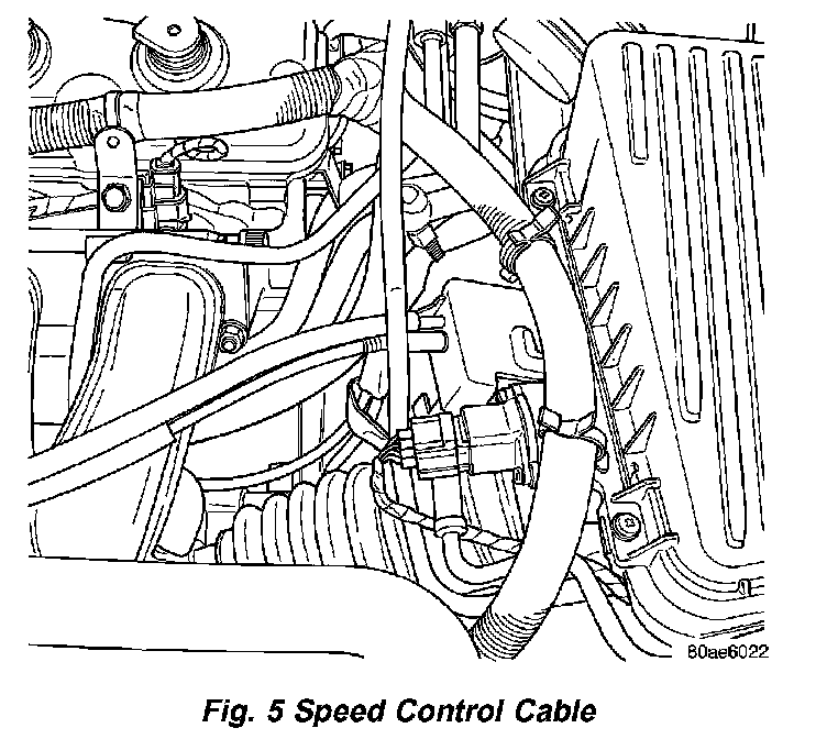 8. Slide speed control cable into throttle cable bracket and engage retaining tab Slide throttle cable into throttle cable bracket and engage retaining tab.