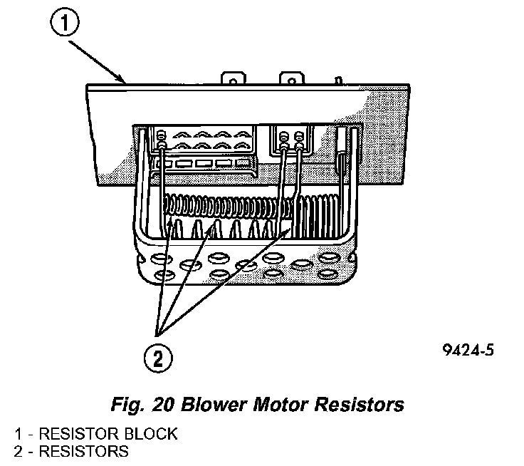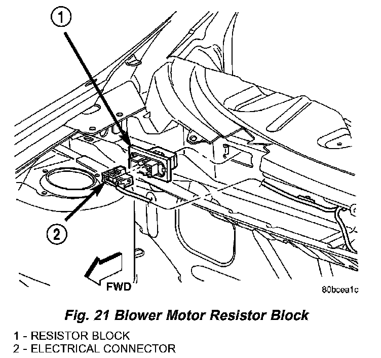 CAUTION: Stay clear of the blower motor and resistor block (Hot). Do not operate the blower motor with the resistor block removed.REMOVAL