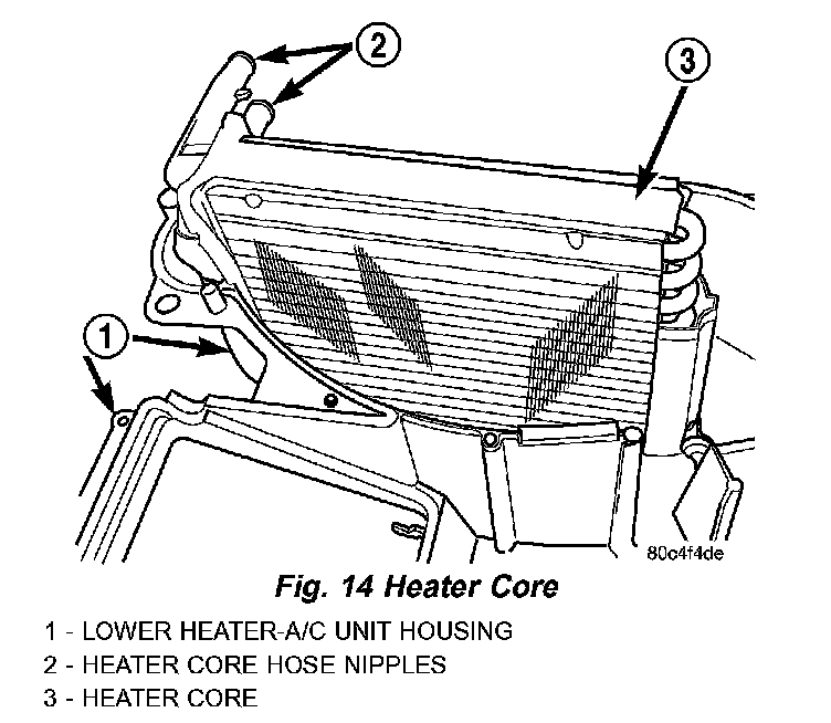 The heater core is located in the heater-A/C unit housing, under the instrument panel.