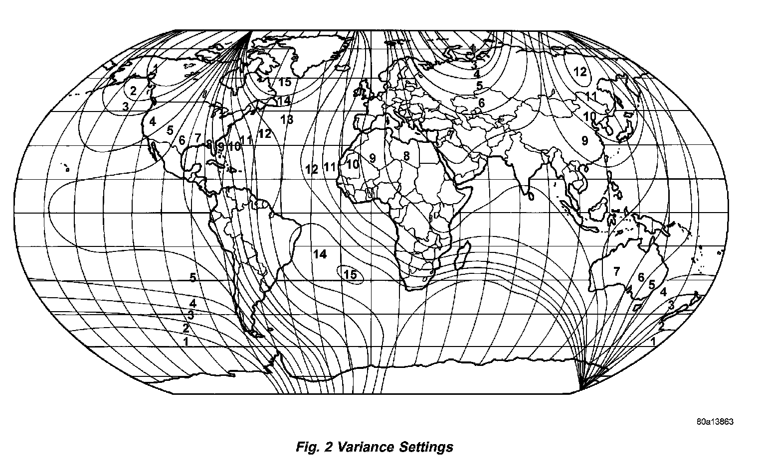 1. Using the Variance Settings map, find your geographic location and note the zone number (Fig. 2).