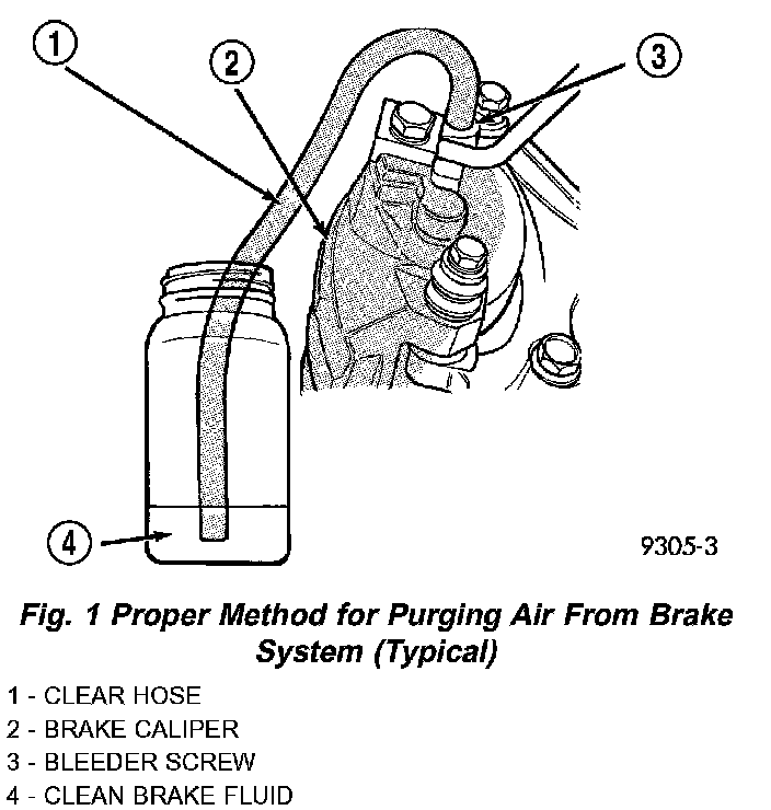 5. After approximately 4-8 ounces of fluid have been bled through the brake circuit and an air-free flow is maintained in the clear plastic hose and jar, close the bleeder screw.