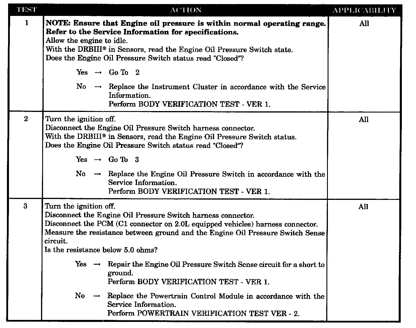 Engine oil pressure switch sense circuit short to ground