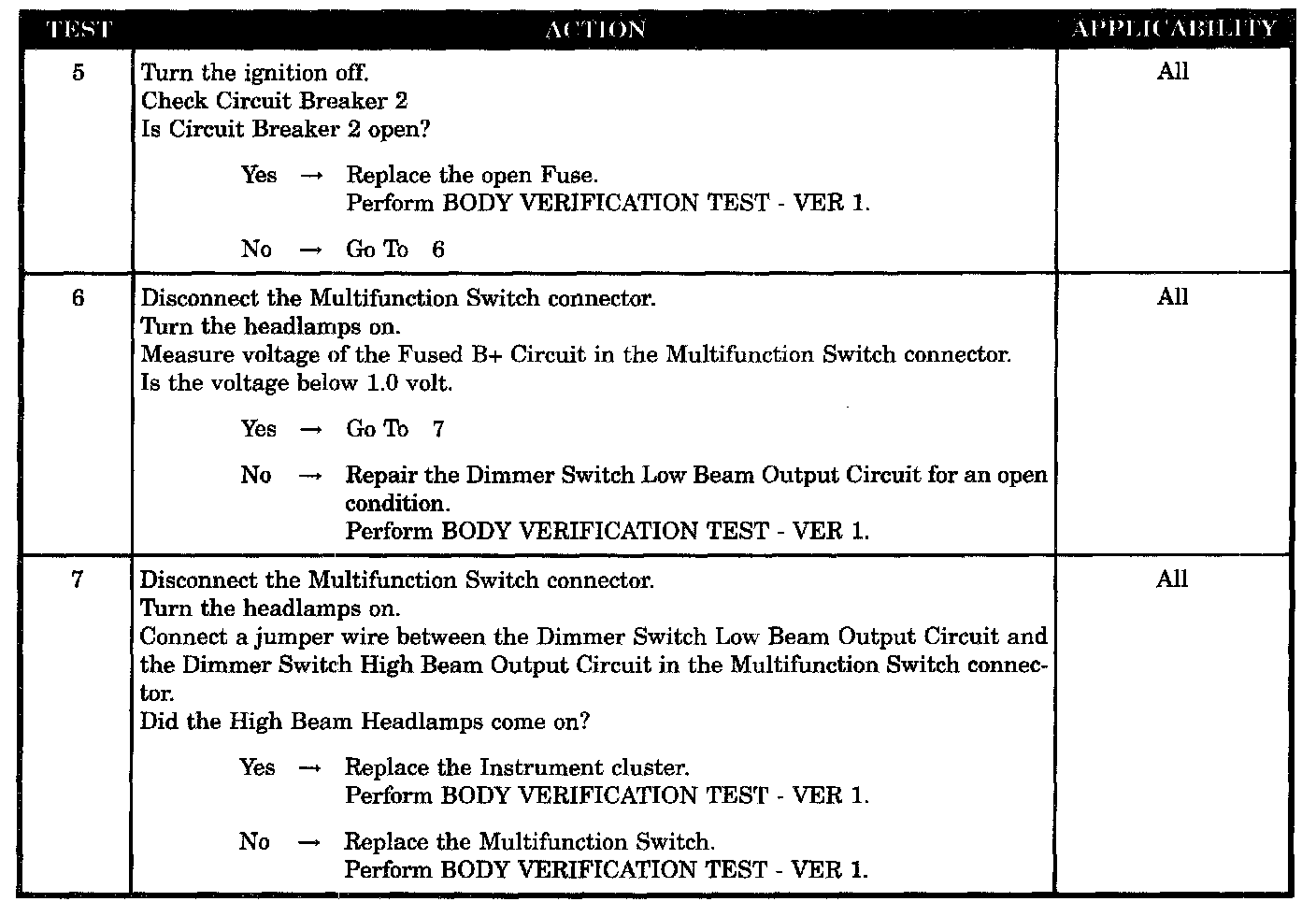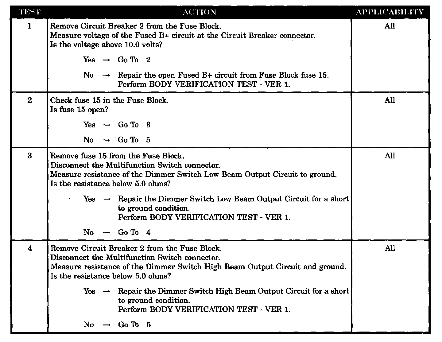 HIGH BEAM HEADLAMPS WILL NOT TURN ON