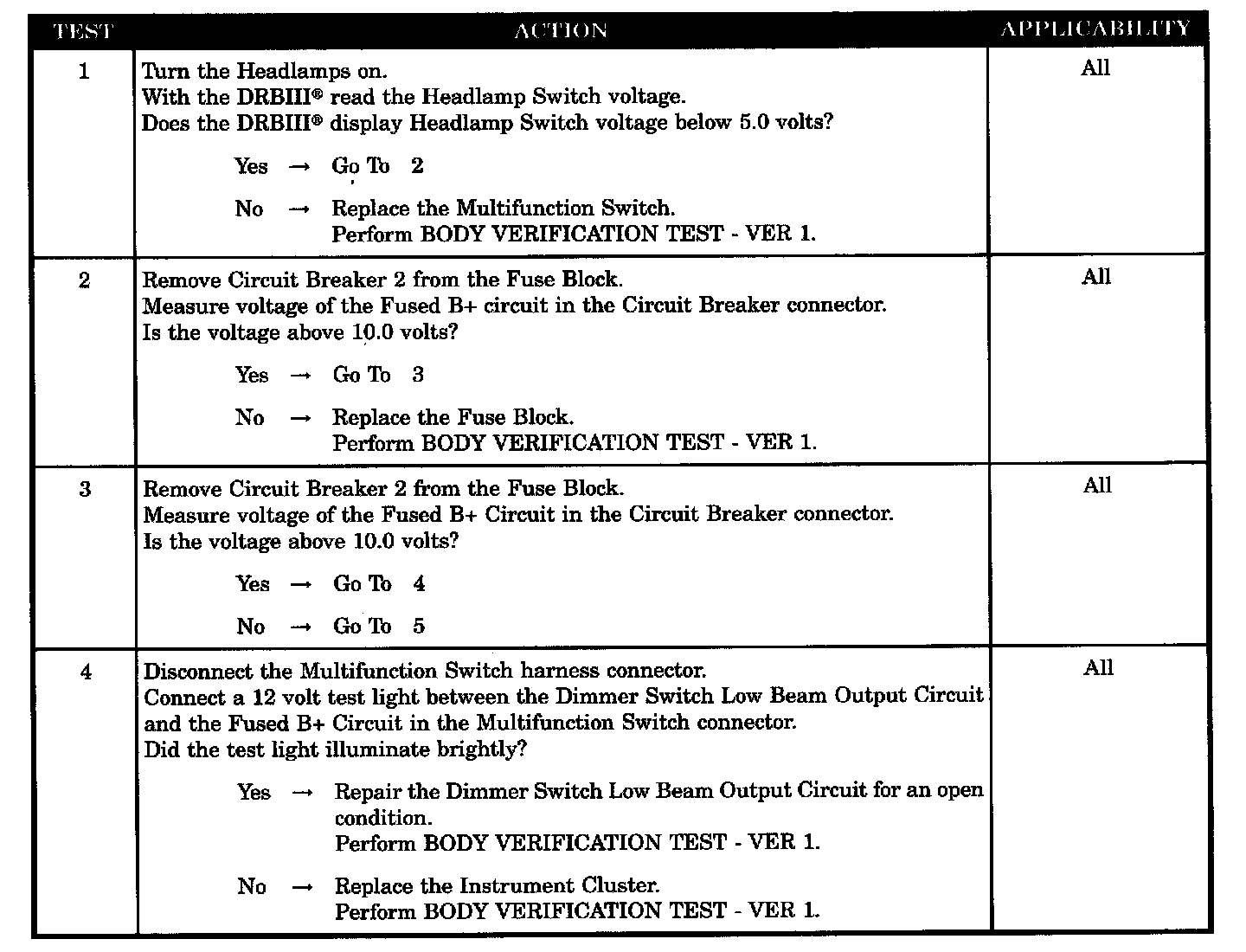 LOW BEAM HEADLAMPS WILL NOT TURN ON