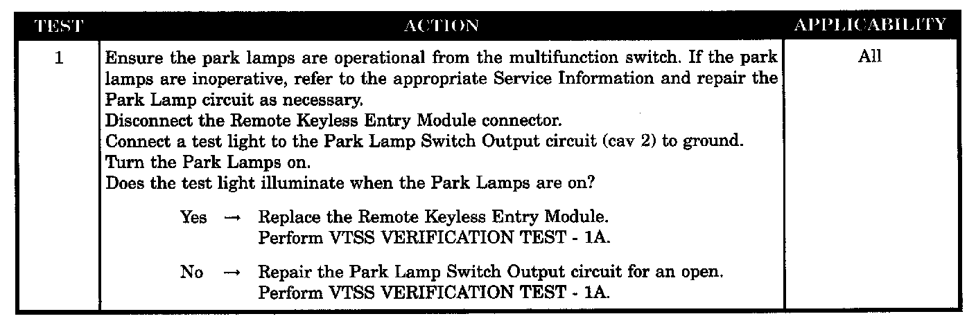 PARK LAMPS FAIL TO FLASH DURING ALARM