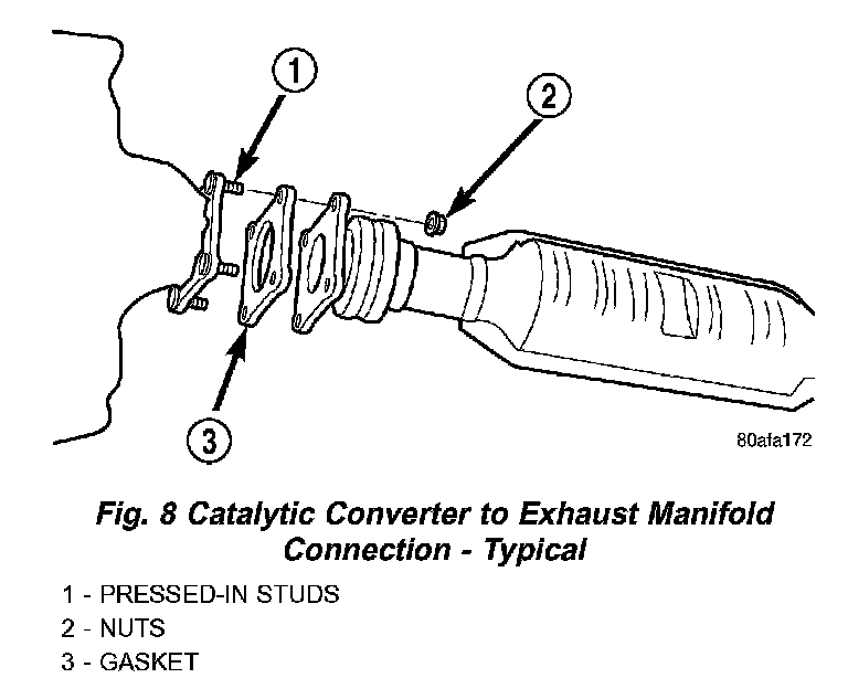 4. Remove catalytic converter to exhaust manifold attaching fasteners and remove converter from vehicle.