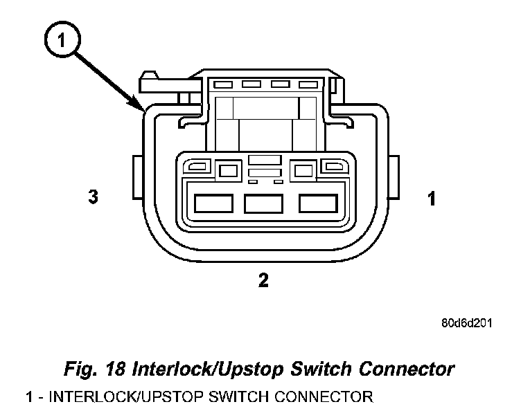 4. Using an ohmmeter, check for continuity between terminals 1 & 2 (Fig. 18) with the upstop switch depressed (clutch pedal at rest). The ohmmeter should show continuity (0 ohms).