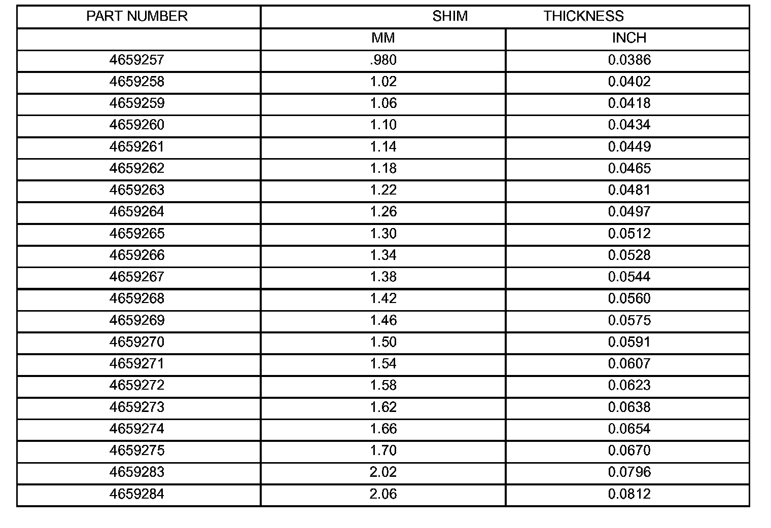 Shim thickness need be determined only if any of the following parts are replaced: