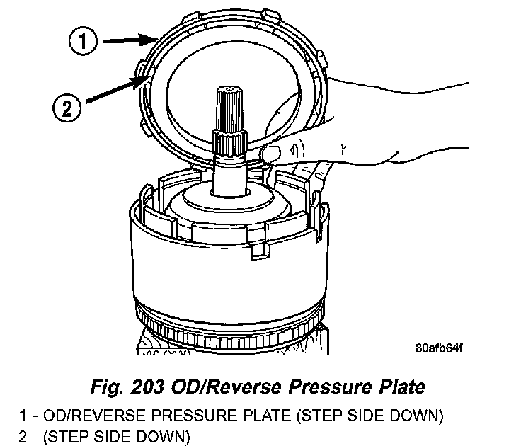 7. Remove OD/Reverse pressure plate (Fig. 203).