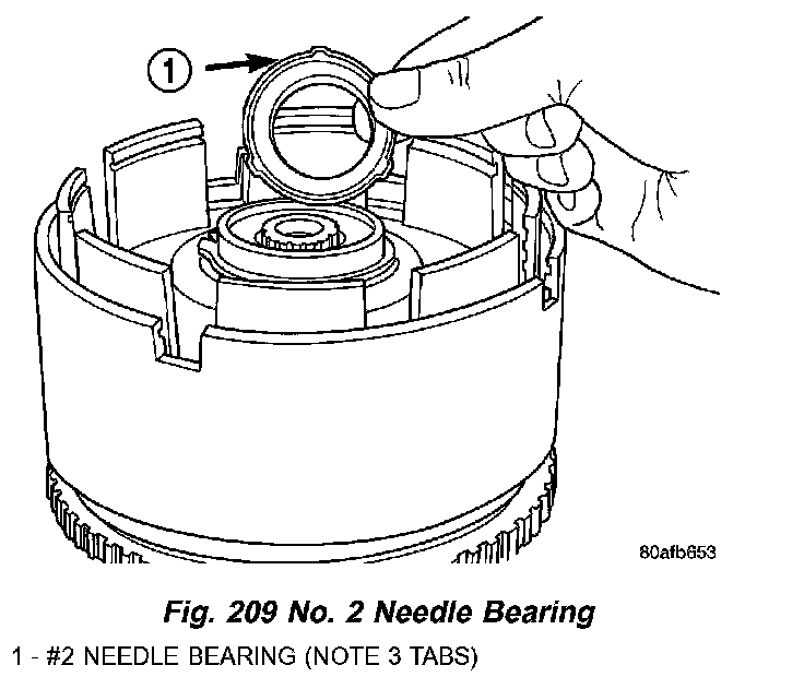 5. Remove the reverse clutch pack (two fibers/one steel) (Fig. 201).