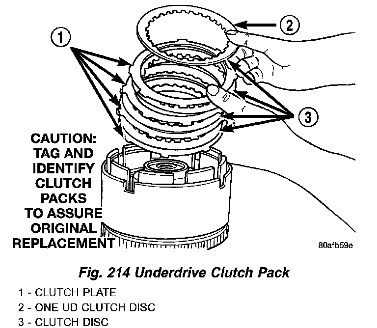NOTE: Tag underdrive clutch pack for reassembly identification.