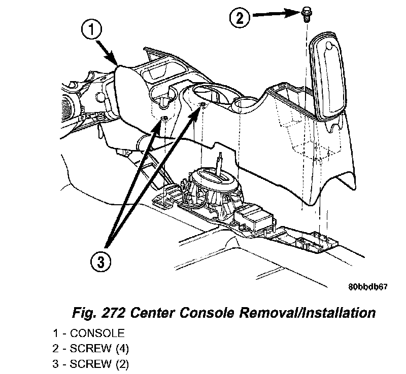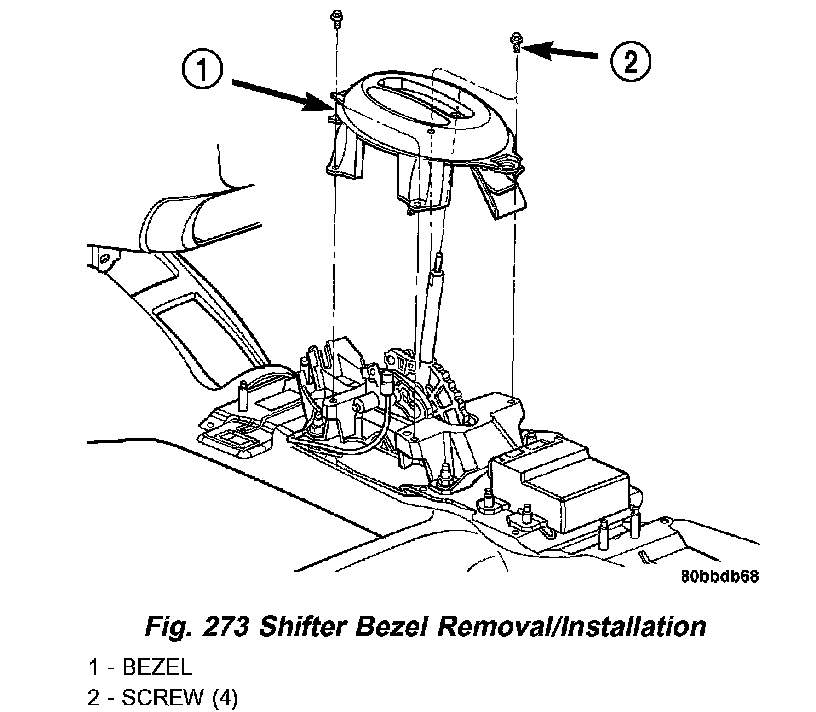 5. Disconnect the shifter/ignition interlock cable from the shifter lever and bracket as shown in (Fig. 274). Remove the cable core end from the plastic cam of the shifter mechanism and release cable from shifter bracket.