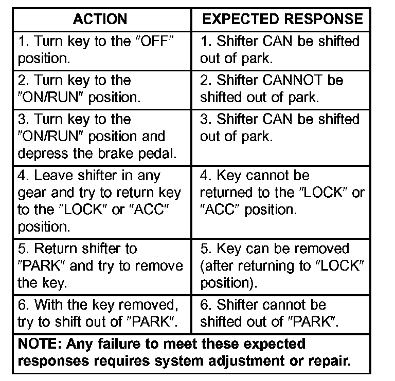 12. Connect battery negative cable and verify interlock system operation as shown.
