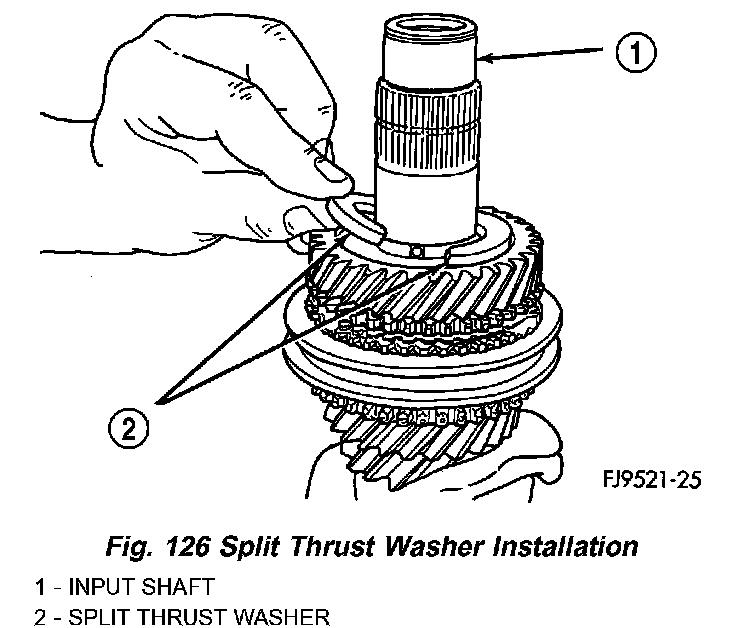 8. Install split thrust washer onto input shaft (Fig. 126).