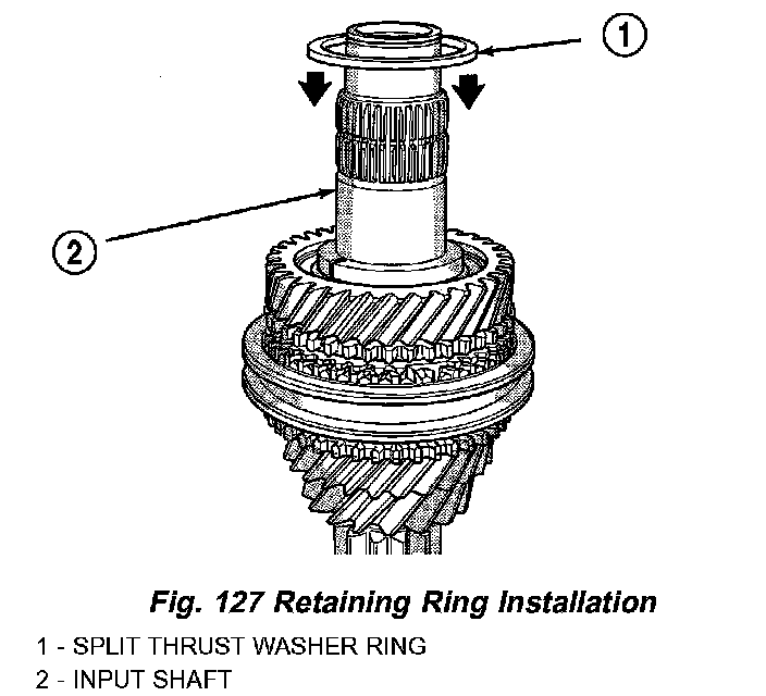 9. Install split thrust washer retaining ring (Fig. 127).