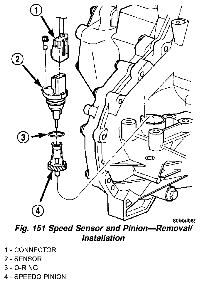 2. Using a NEW O-ring, install the speed sensor to the transaxle (Fig. 151).