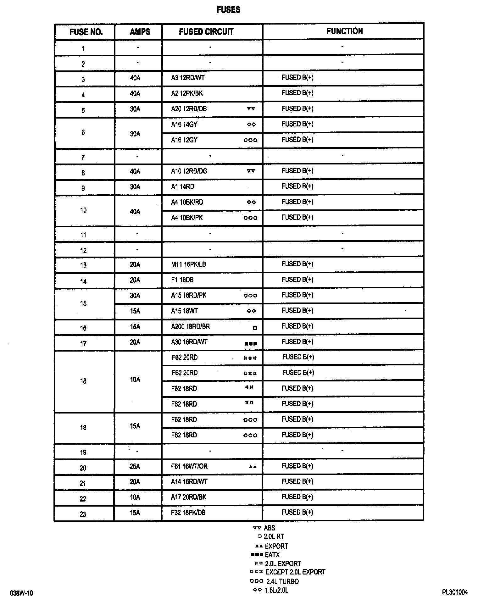 Neon L4-2.0L VIN F HO