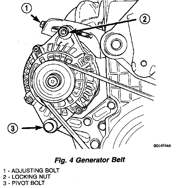 2. Using a wrench, rotate belt tensioner clockwise (Fig. 3) until belt can be installed onto power steering pump pulley. Release spring tension onto belt.