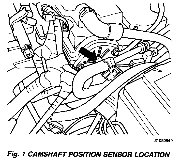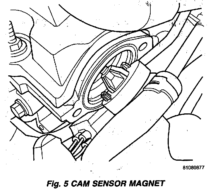 5. Remove camshaft position sensor mounting screws. Remove sensor.