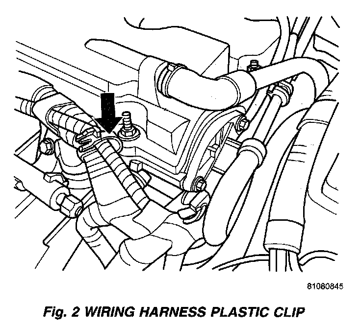 2. Disconnect the plastic clip for the Wiring harness from the stud on the valve cover.