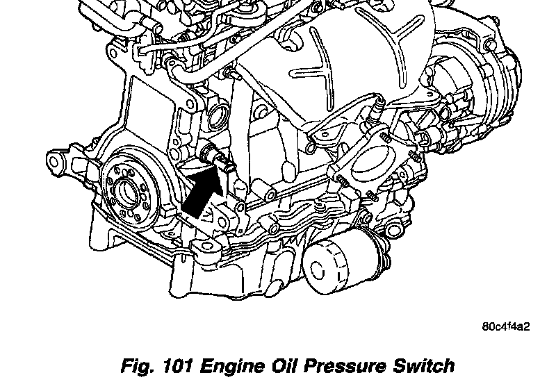 1. Install oil pressure switch and connect electrical connector (Fig. 101).