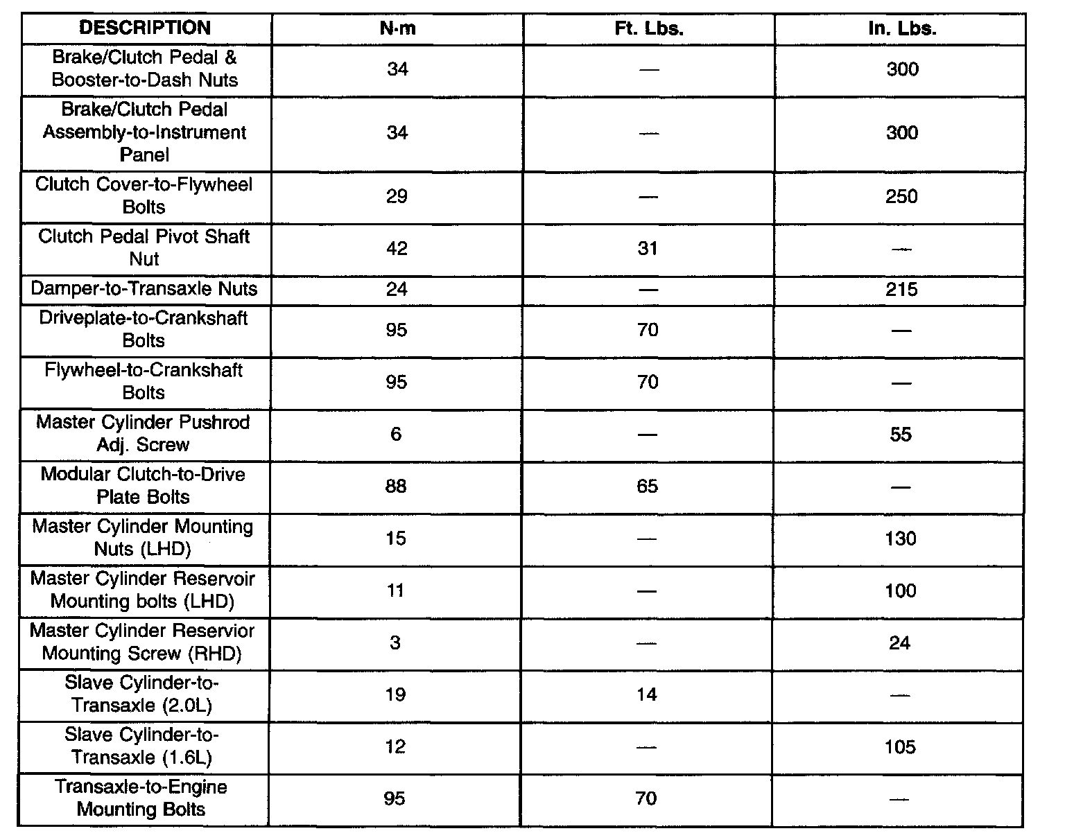 TORQUE SPECIFICATIONS