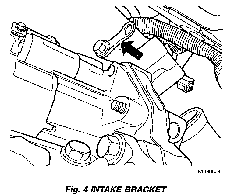 9. Loosen the upper bolt for the intake manifold support and swing bracket out of the way.