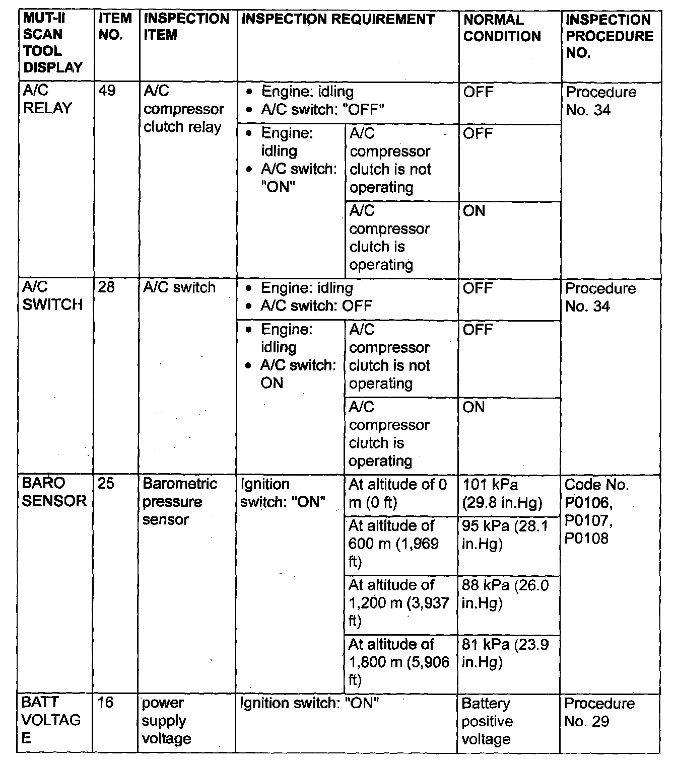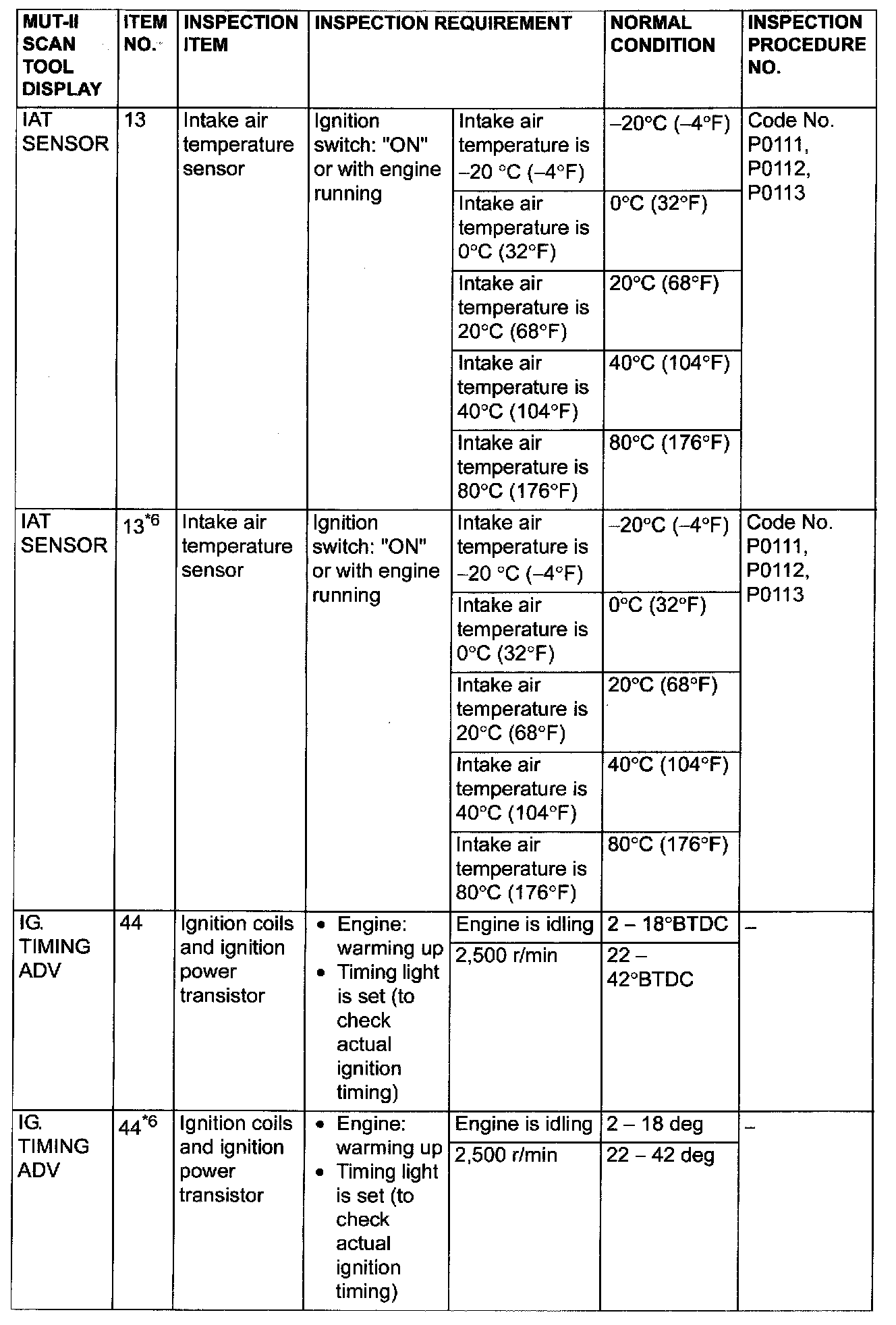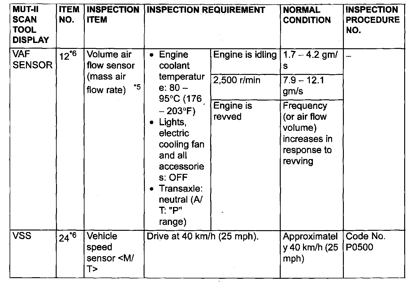 - *6: GST items. [Data list items consist of MUT-II items and GST items. GST items can be accessed through the use of a general scan tool (GST). When MUT-II (MB991502) is used, MUT-II items appear alphabetically: then, GST items appear alphabetically The black and white characters of the GST items are inverted from the MUT-II items.