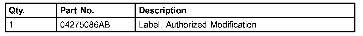 18. Type the necessary information on the "Authorized Modification Label" p/n 04275086AB and attach near the VECI label (Fig. 1).