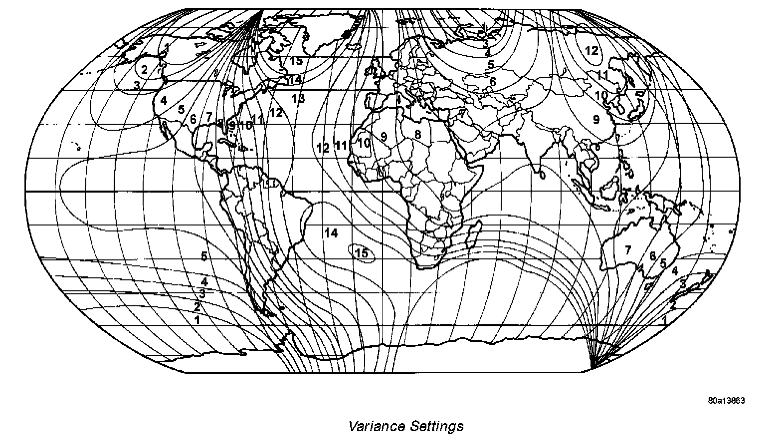 COMPASS VARIATION ADJUSTMENTCompass variance, also known as magnetic declination, is the difference in angle between magnetic north and true geographic north. In some geographic locations, the difference between magnetic and geographic north is great enough to cause the compass to give false readings. If this problem occurs, the compass variance must be set.