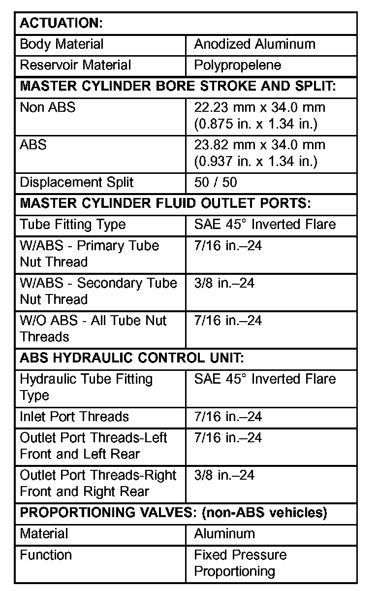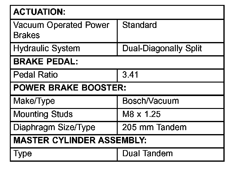 Brake Actuating System Specifications