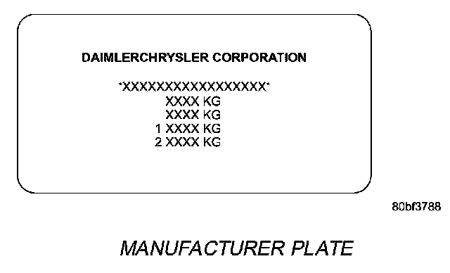 The Manufacturer Plate is located in the engine compartment on the passenger side rear corner of the hood. The plate contains five lines of information: