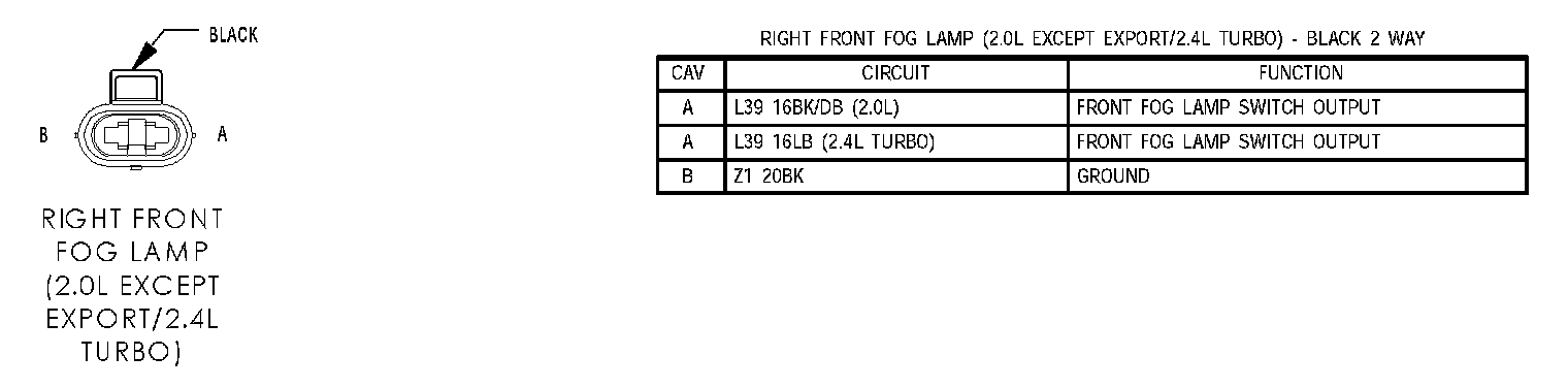 Right Front Fog Lamp (2.0L Except Export/2.4L Turbo):