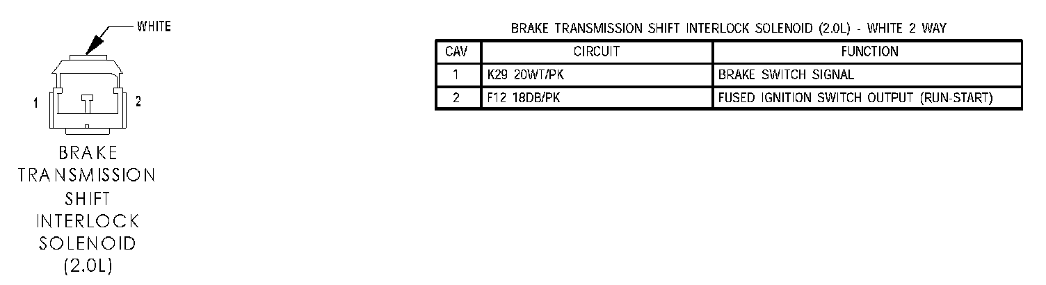 Brake Transmission Shift Interlock Solenoid (2.0L):
