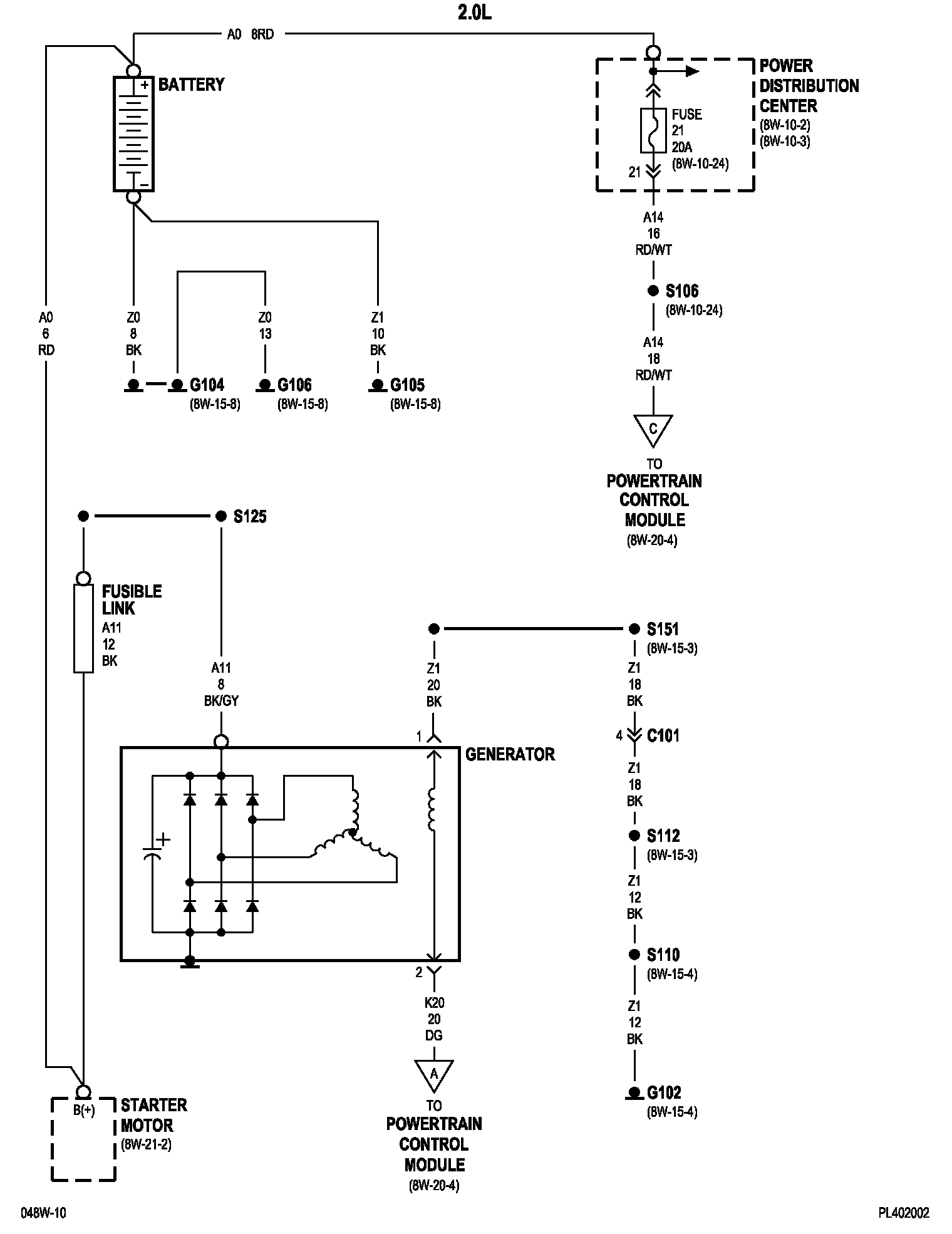 PLEASE NOTE: Some diagram sheets may appear to be missing because of gaps in the number sequences. These "gaps" are actually for diagrams that do not apply to the vehicle model selected.8w-20-2 (2.0L):
